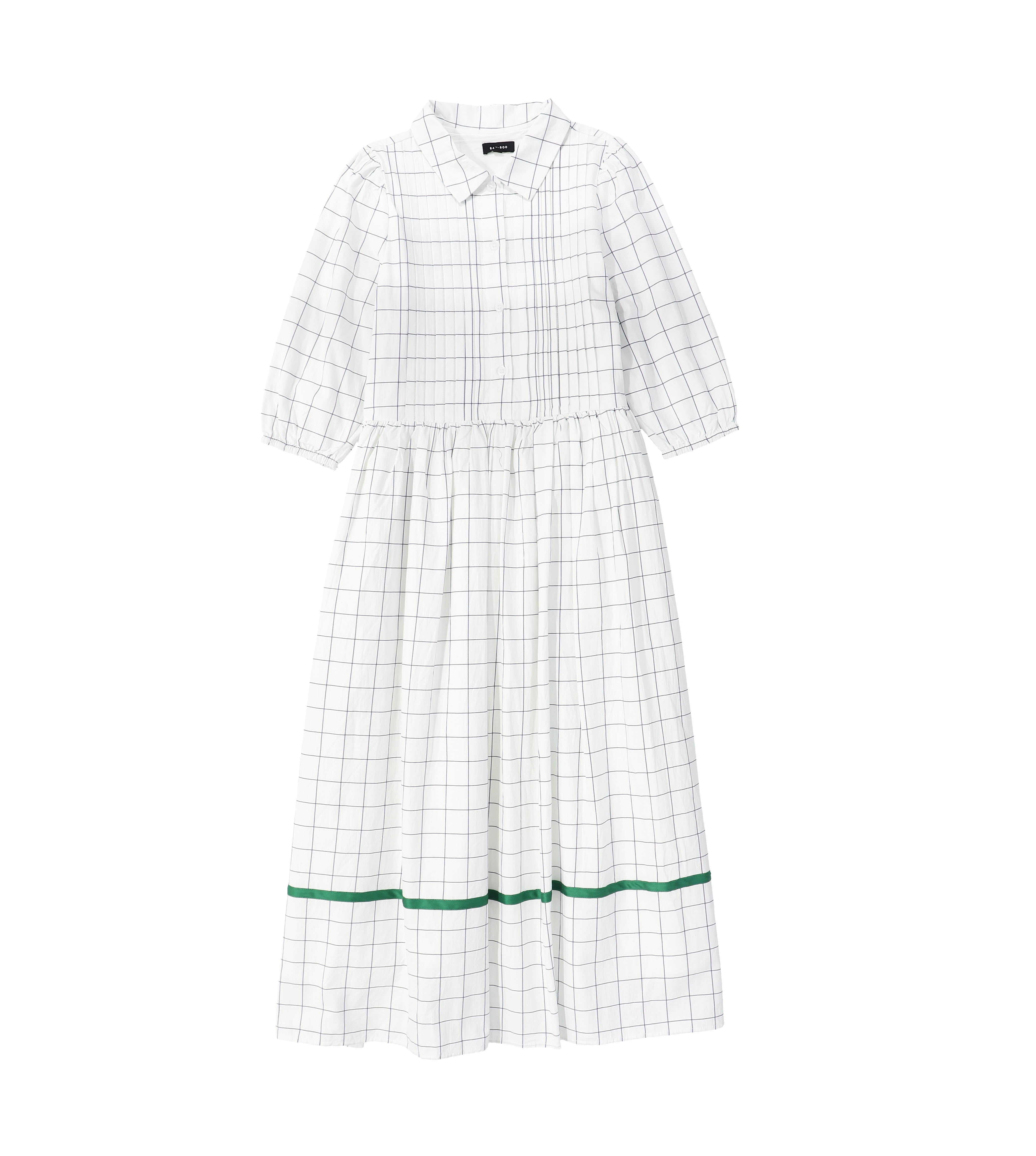 BAMBOO ACCORDIAN PLEAT COLLAR MIDI DRESS