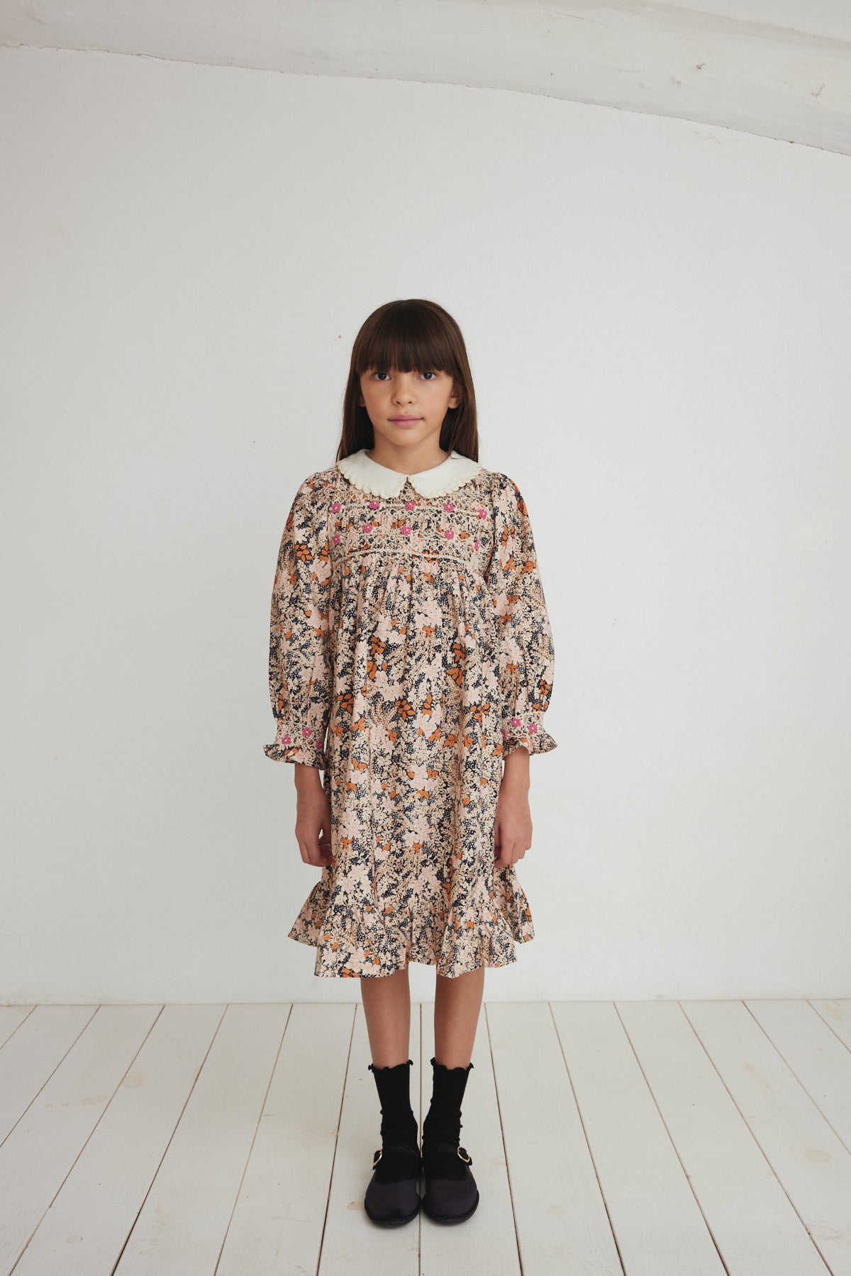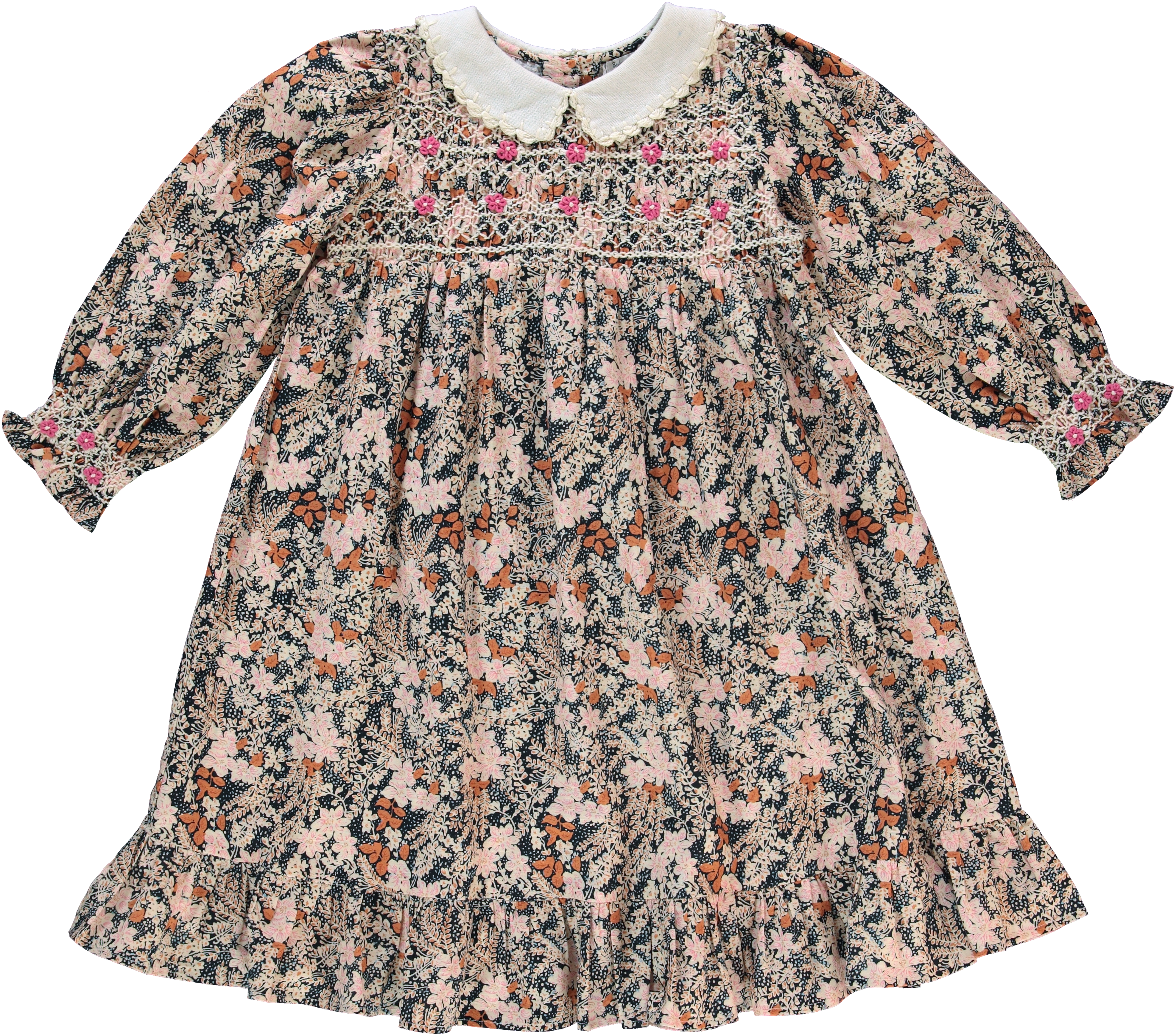 BEBE ORGANIC ELORA FALL BLOOMS SMOCKED DRESS