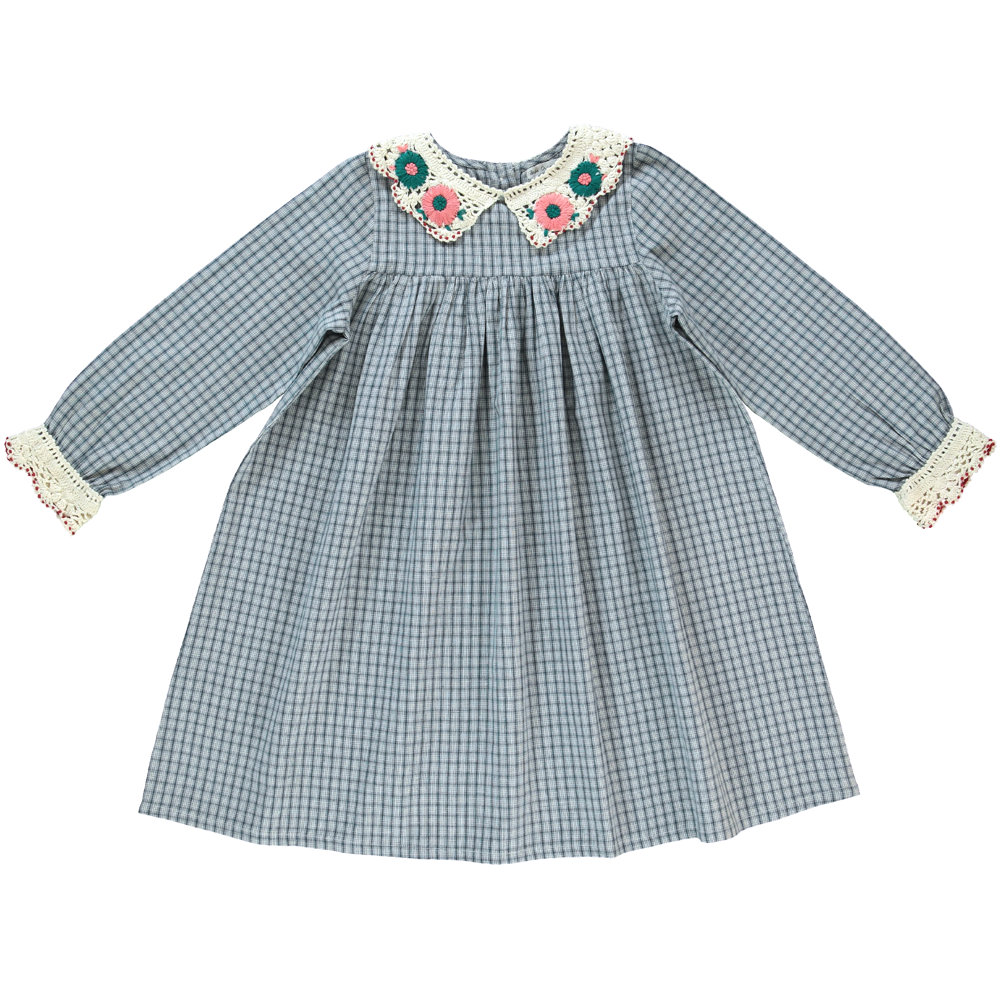 Increase quantity for BEBE ORGANIC RHEA EMBROIDERED FLOWERS CHECKED DRESS
