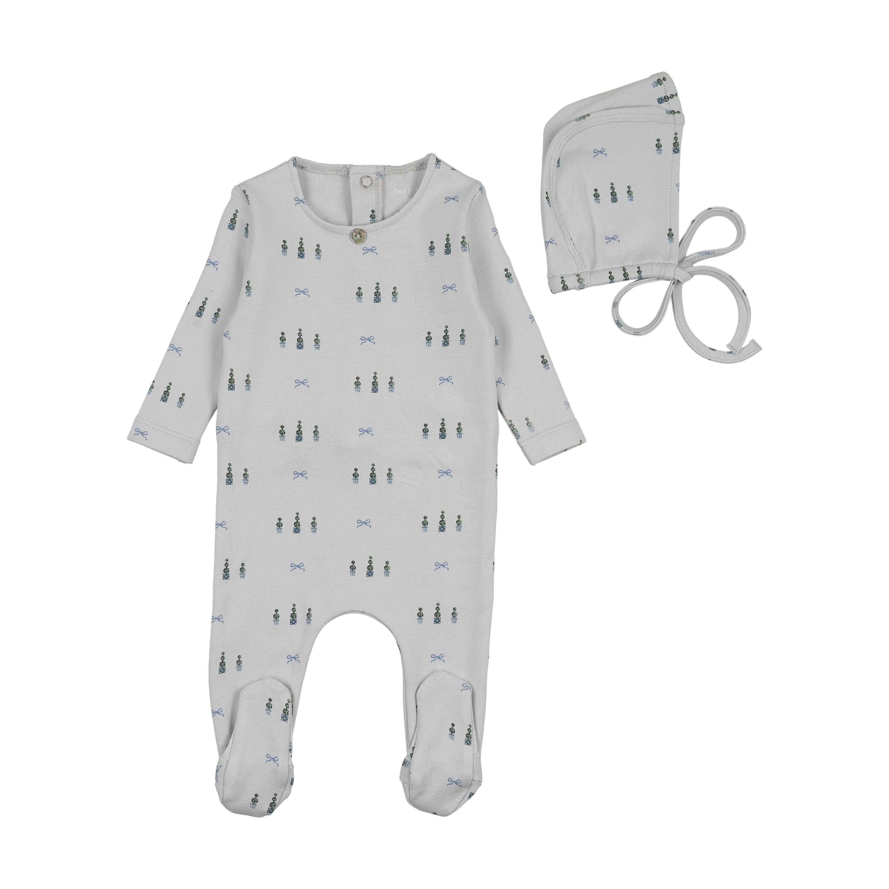 BEE & DEE 2PC TOPIARIES AND BOWS FOOTIE WITH BONNET SET