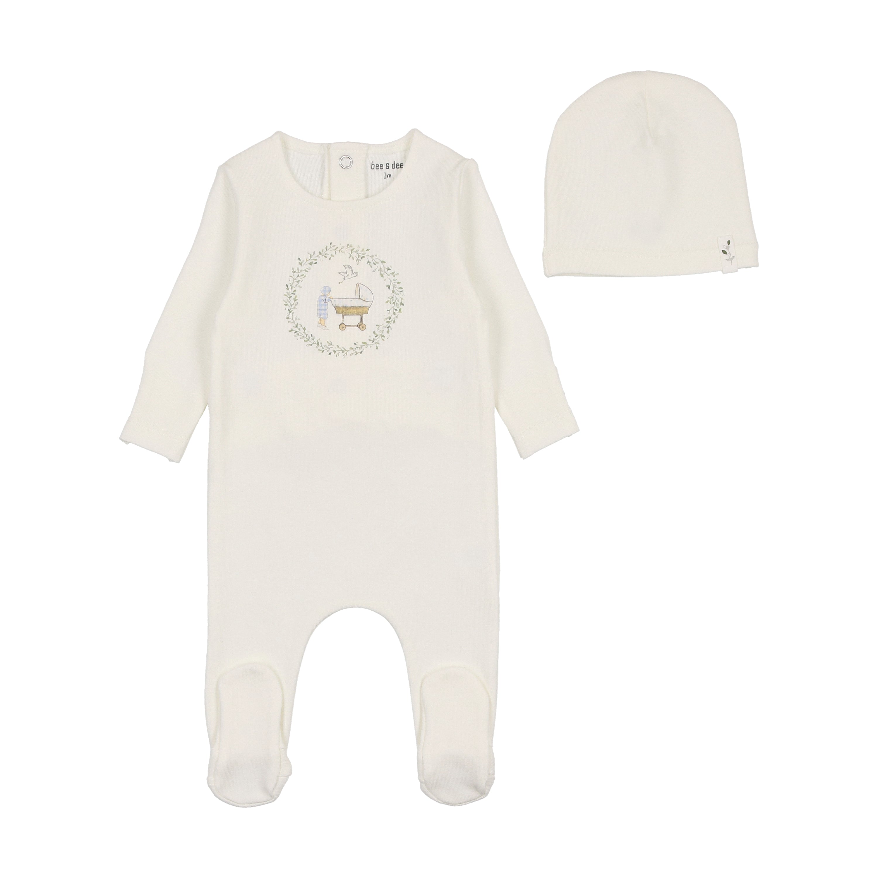 BEE & DEE 4PC GINGHAM TAKE ME HOME FOOTIE+BONNET+MUSLIN SET