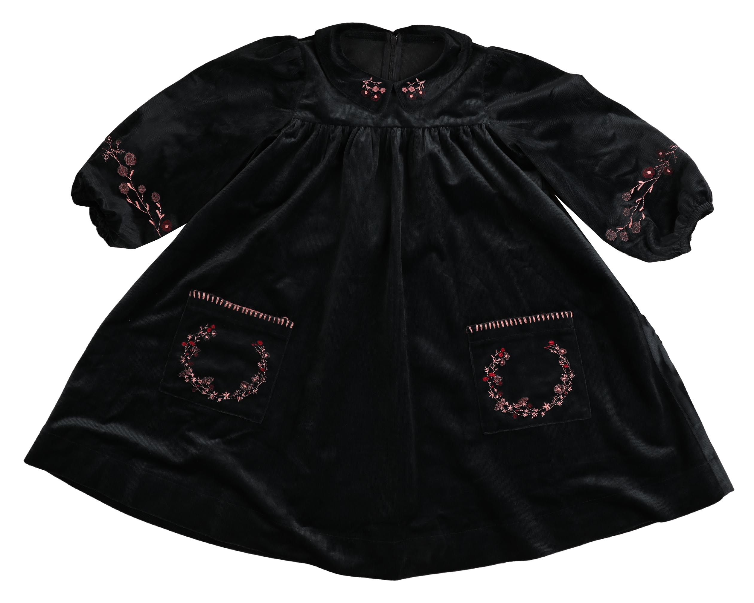 BELATI VELVET CORDUROY EMBROIDERED FLORAL CREST DRESS