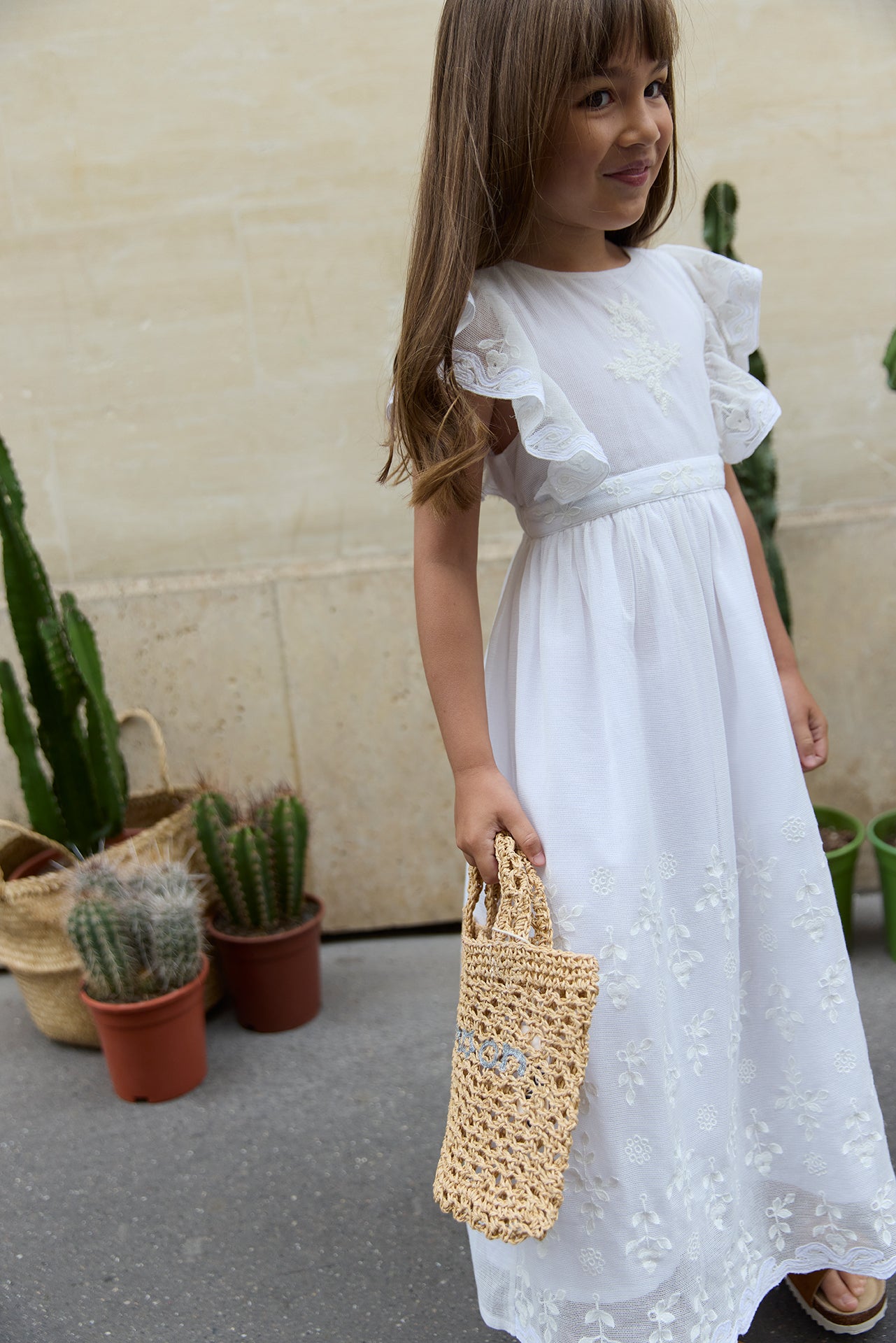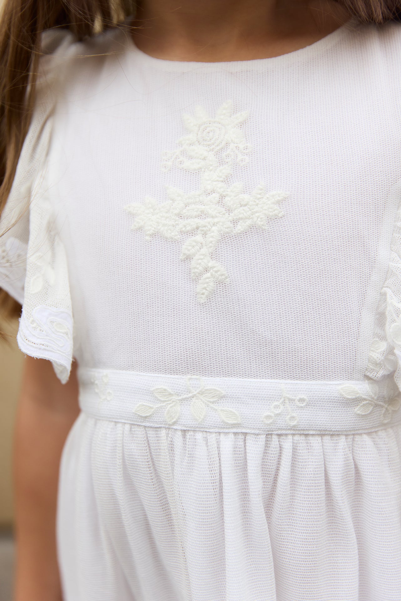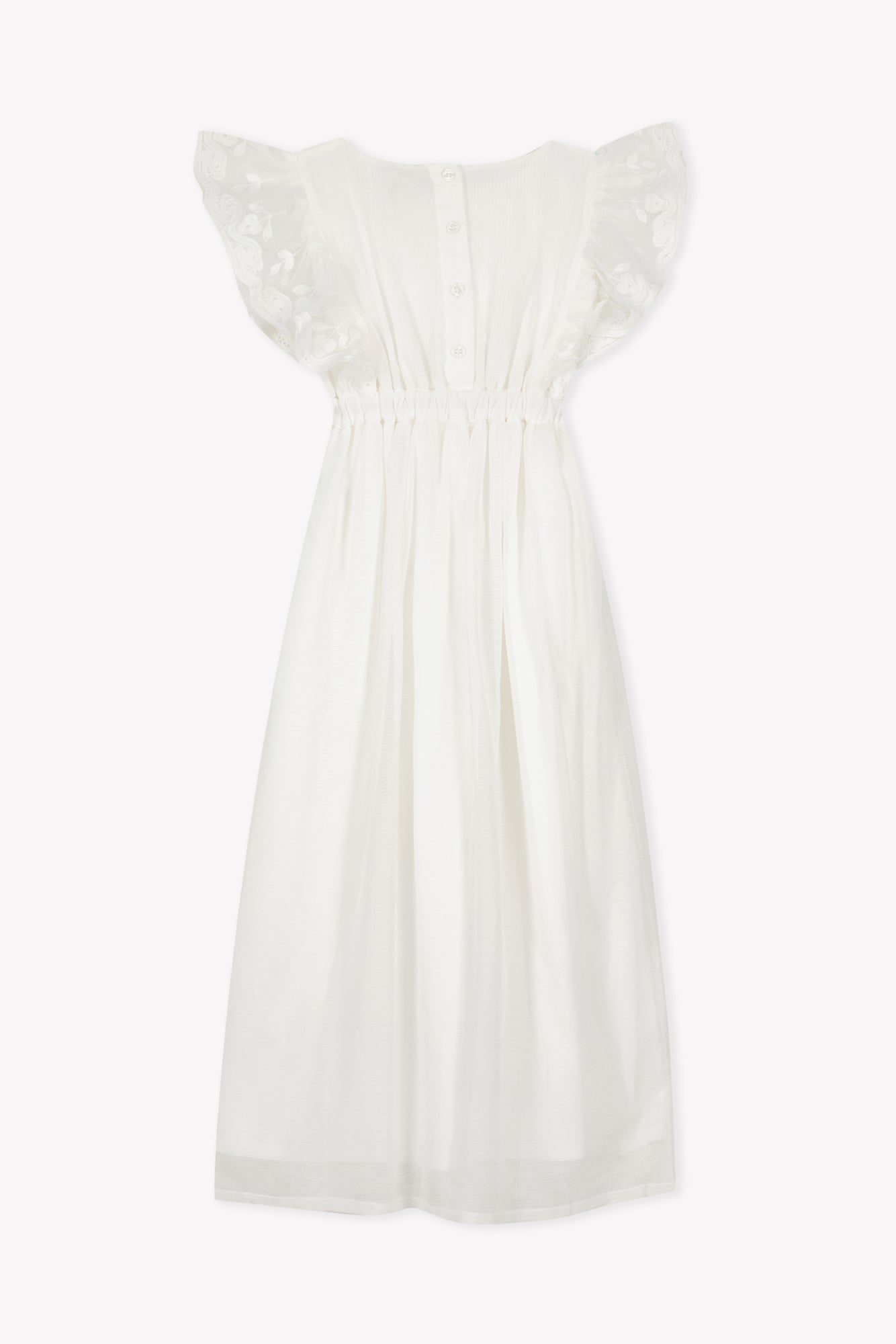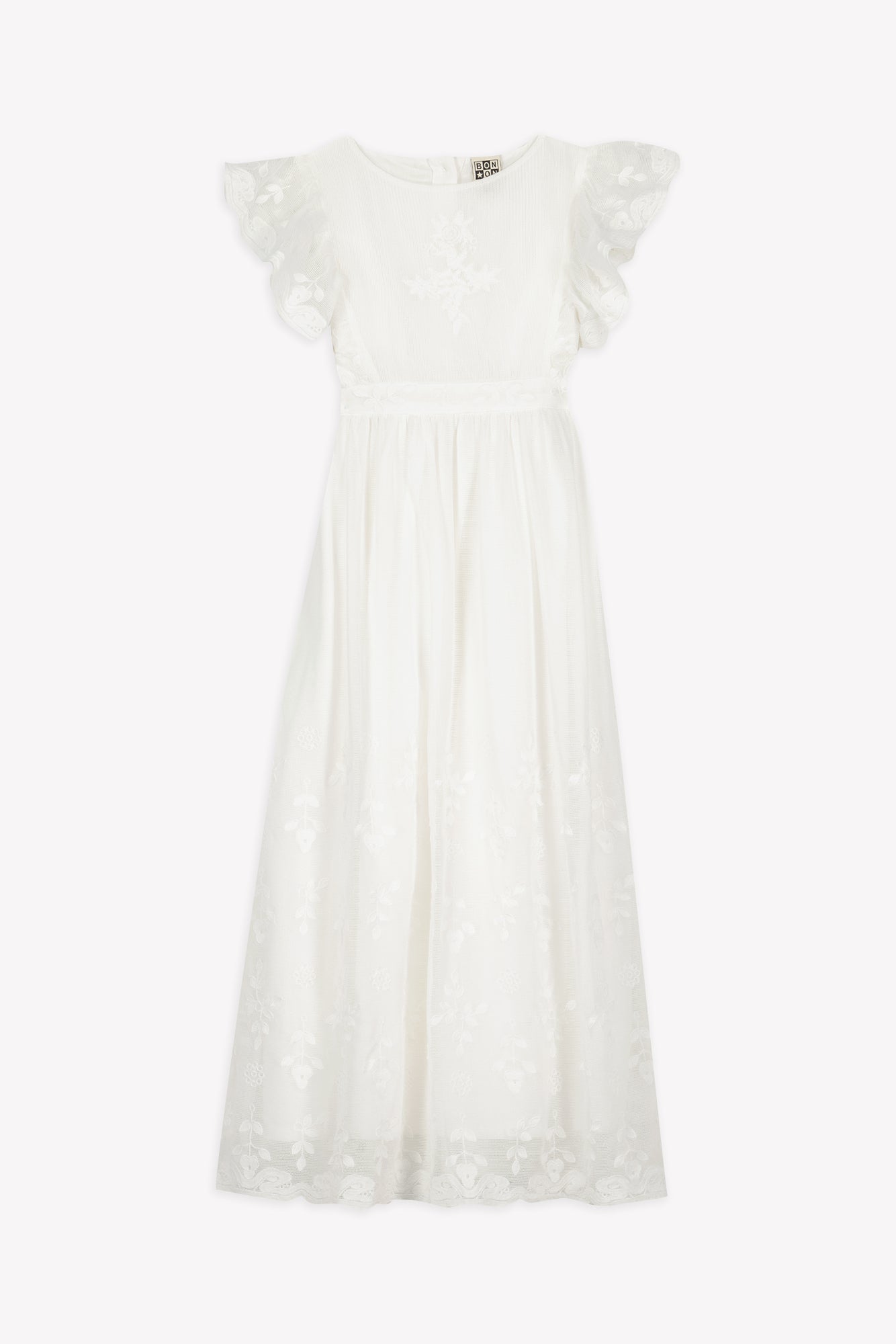 BONTON NOCE EMBROIDERED RUFFLE FLUTTER SLEEVE MAXI DRESS