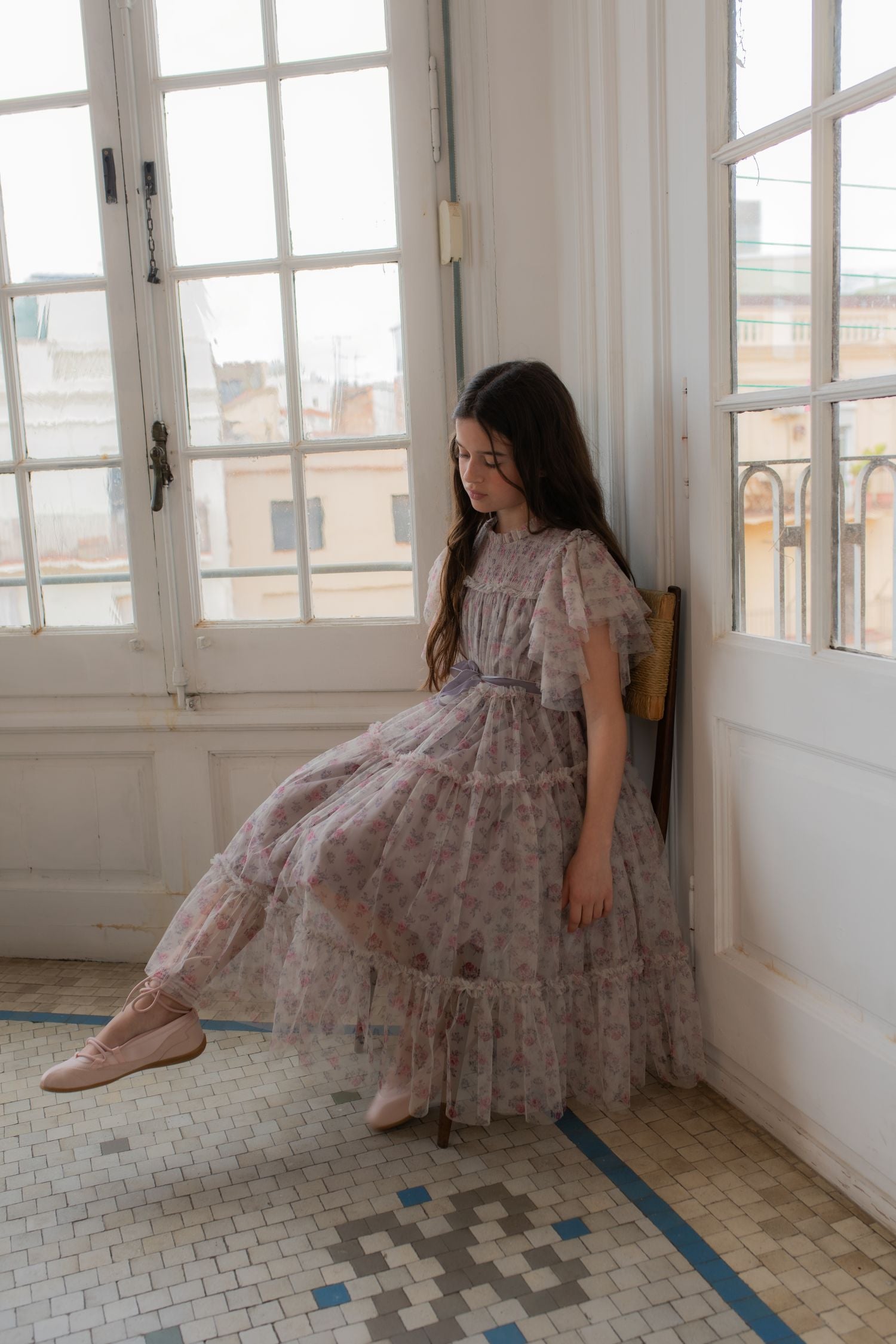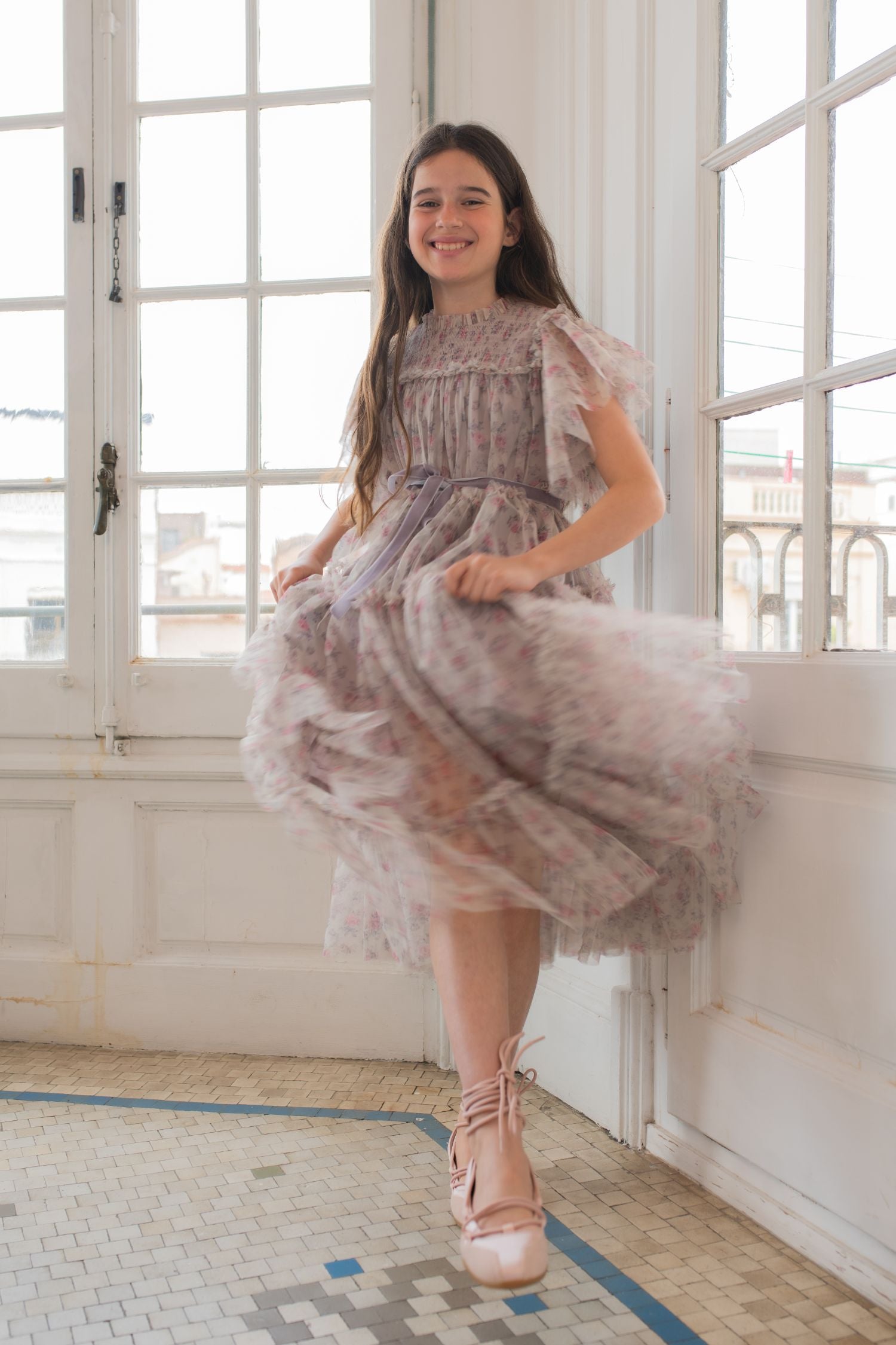 CERA UNA VOLTA MARISOL TUELLE ROSE PRINT RUFFLE DETAIL DRESS