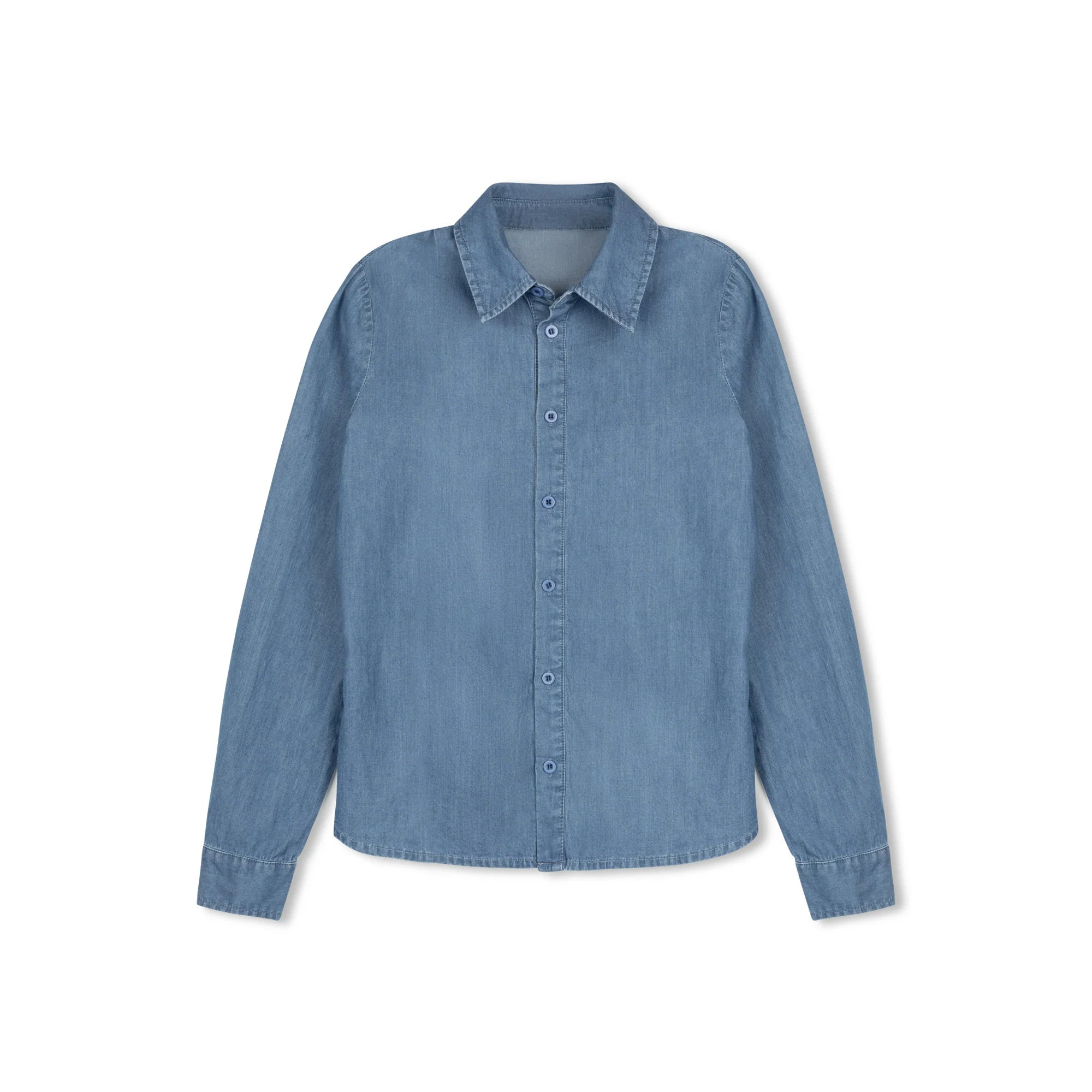 DAINTTI BY VELVETTE LABEL 2PC DENIM SHIRT WITH DENIM ELASTIC BELT MAXI SKIRT