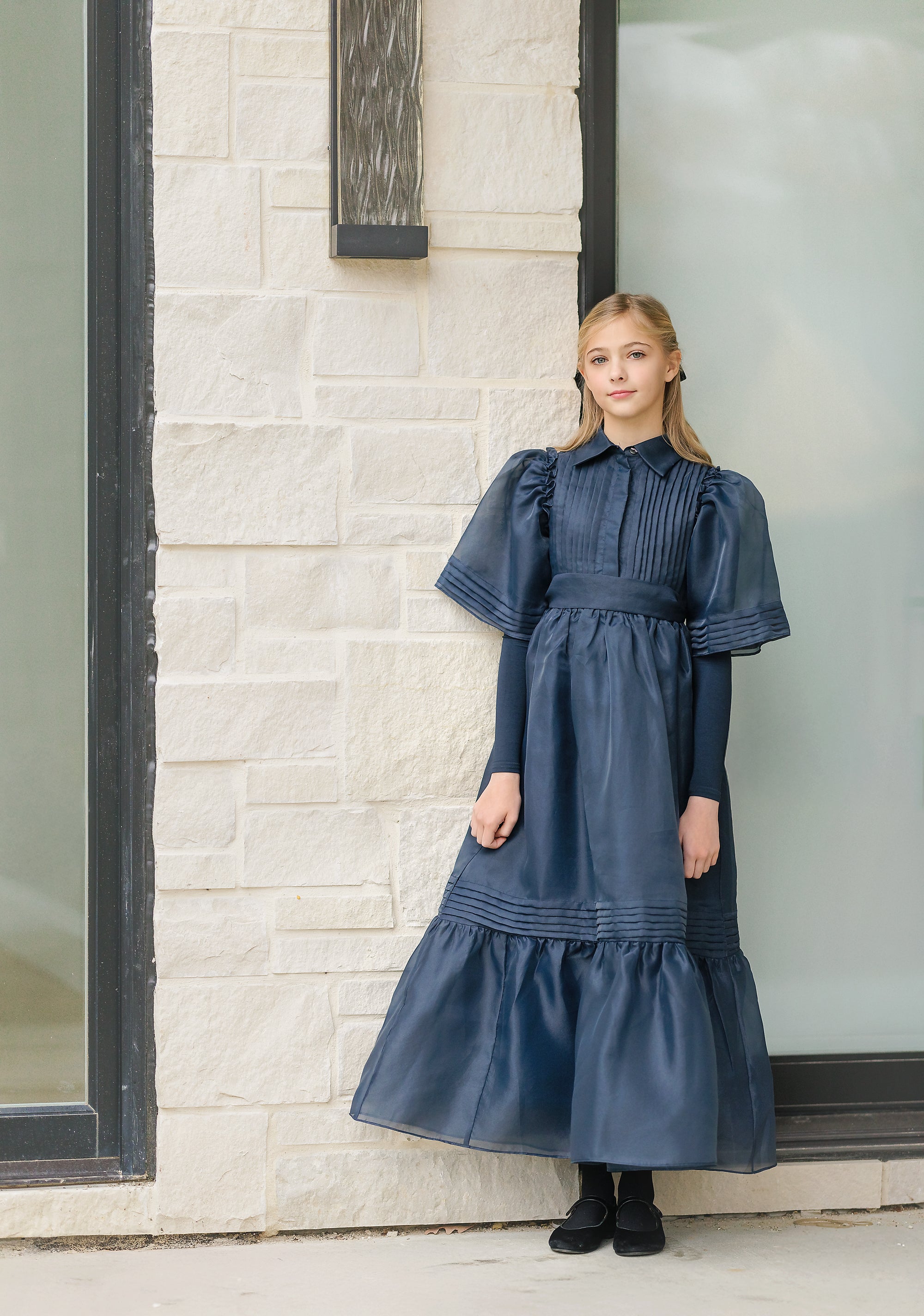 Decrease quantity for DAINTTI BY VELVETTE LABEL COLLAR AND BELT, STITCHED DOWN PLEATED GOWN