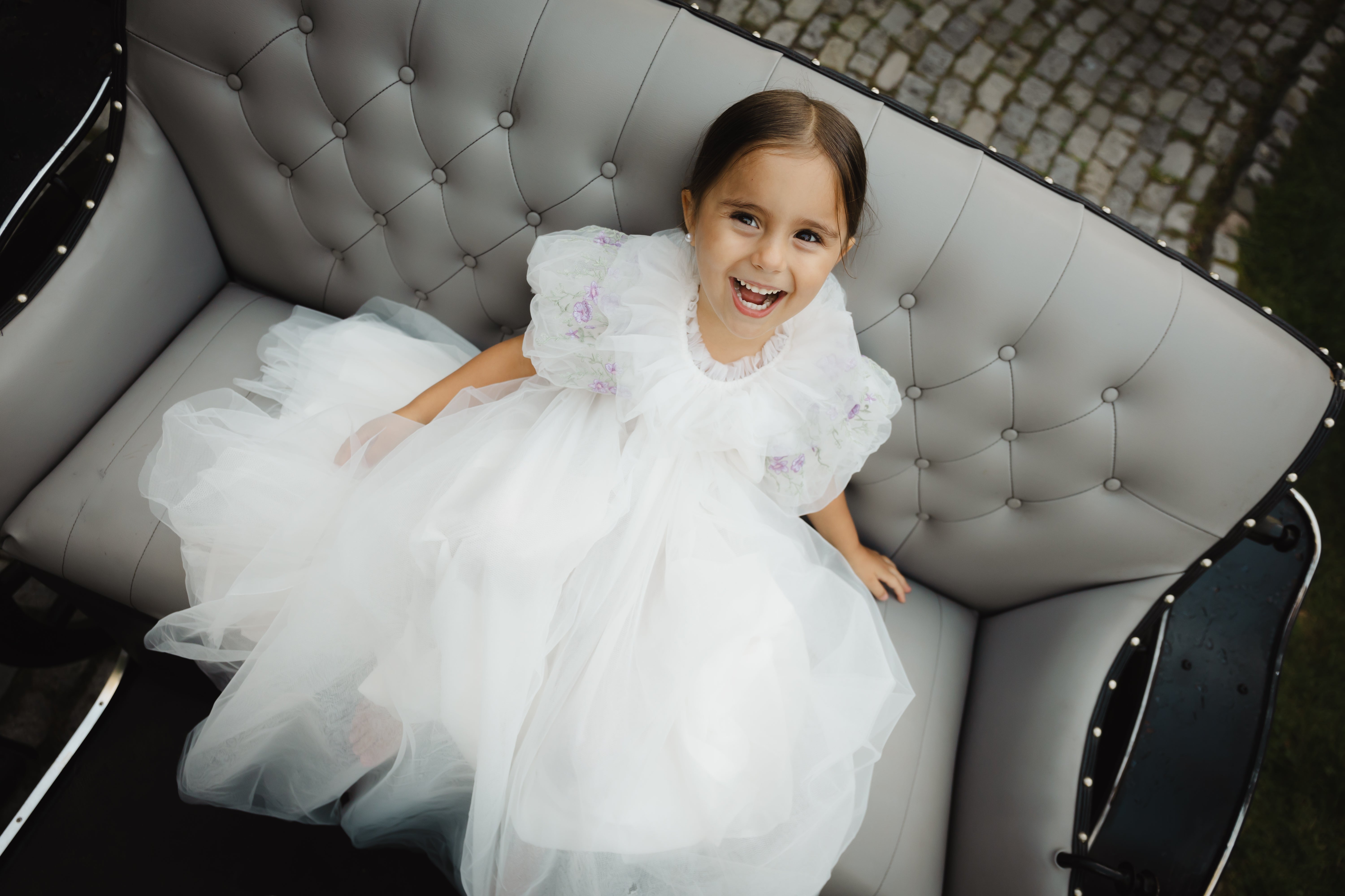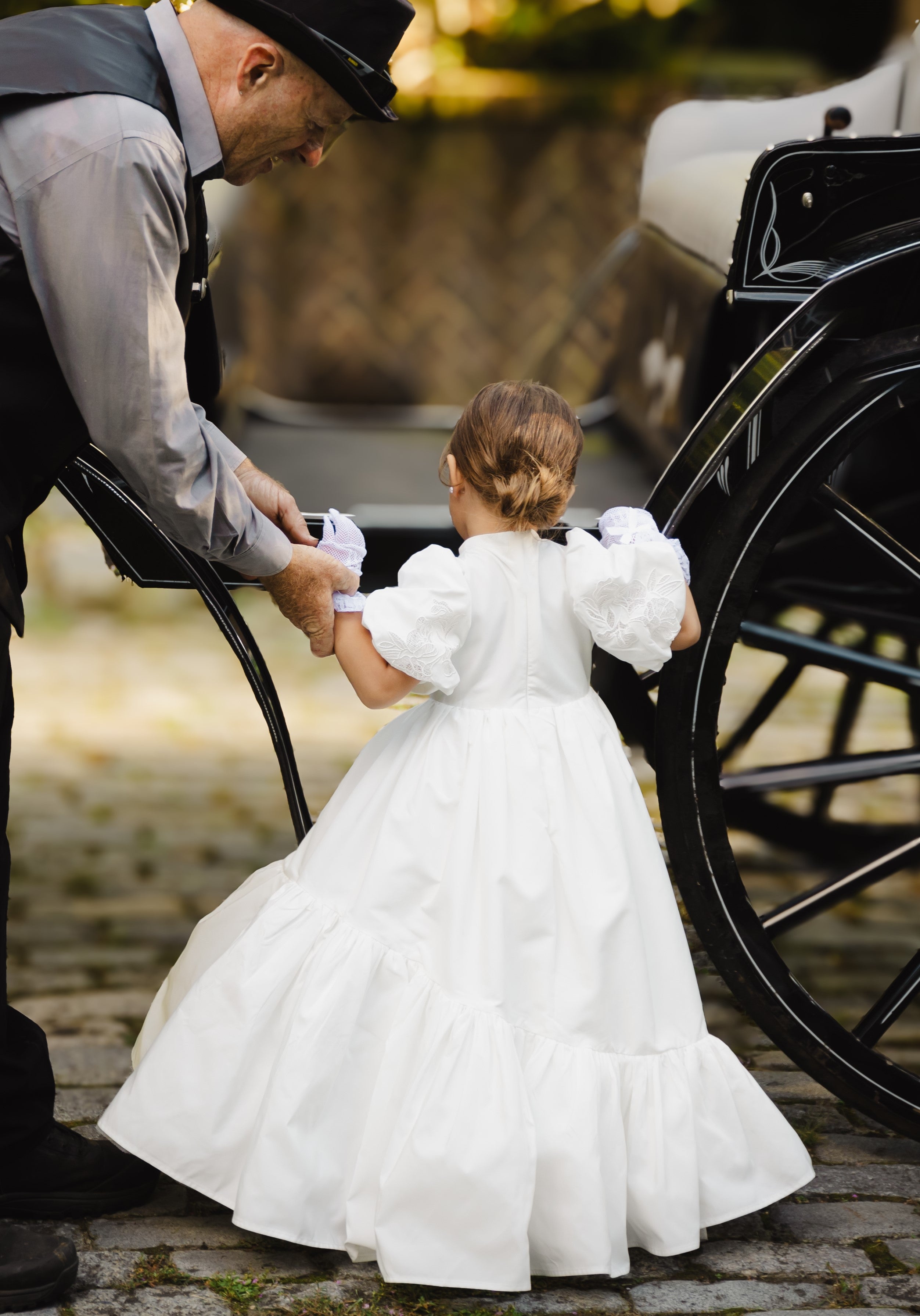 Increase quantity for ELOISA EMBROIDERED FLOWERS BUBBLE SLEEVE TULLE GOWN