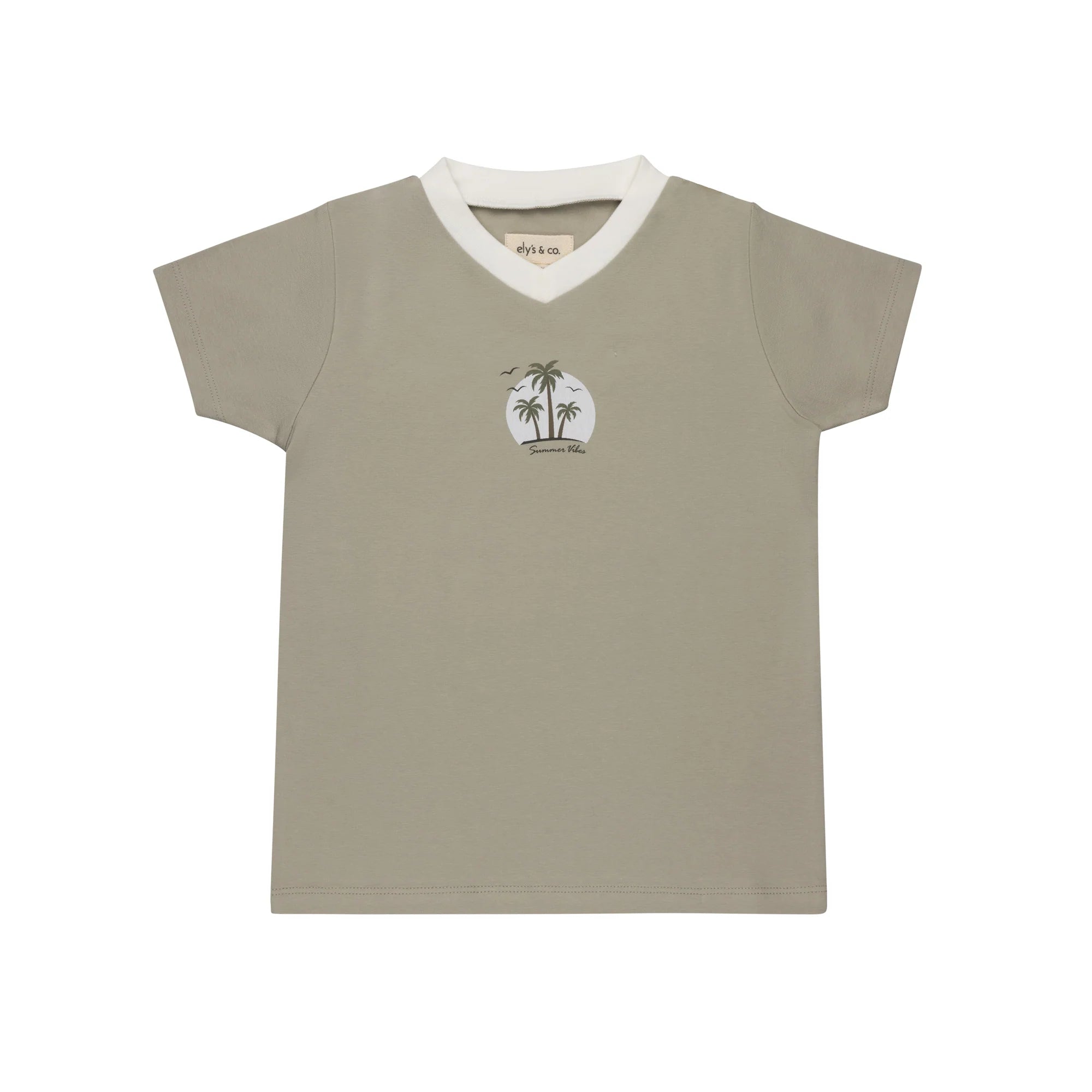 Increase quantity for ELYS & CO. RIBBED PALM PRINT FRENCH TERRY V-NECK TEE