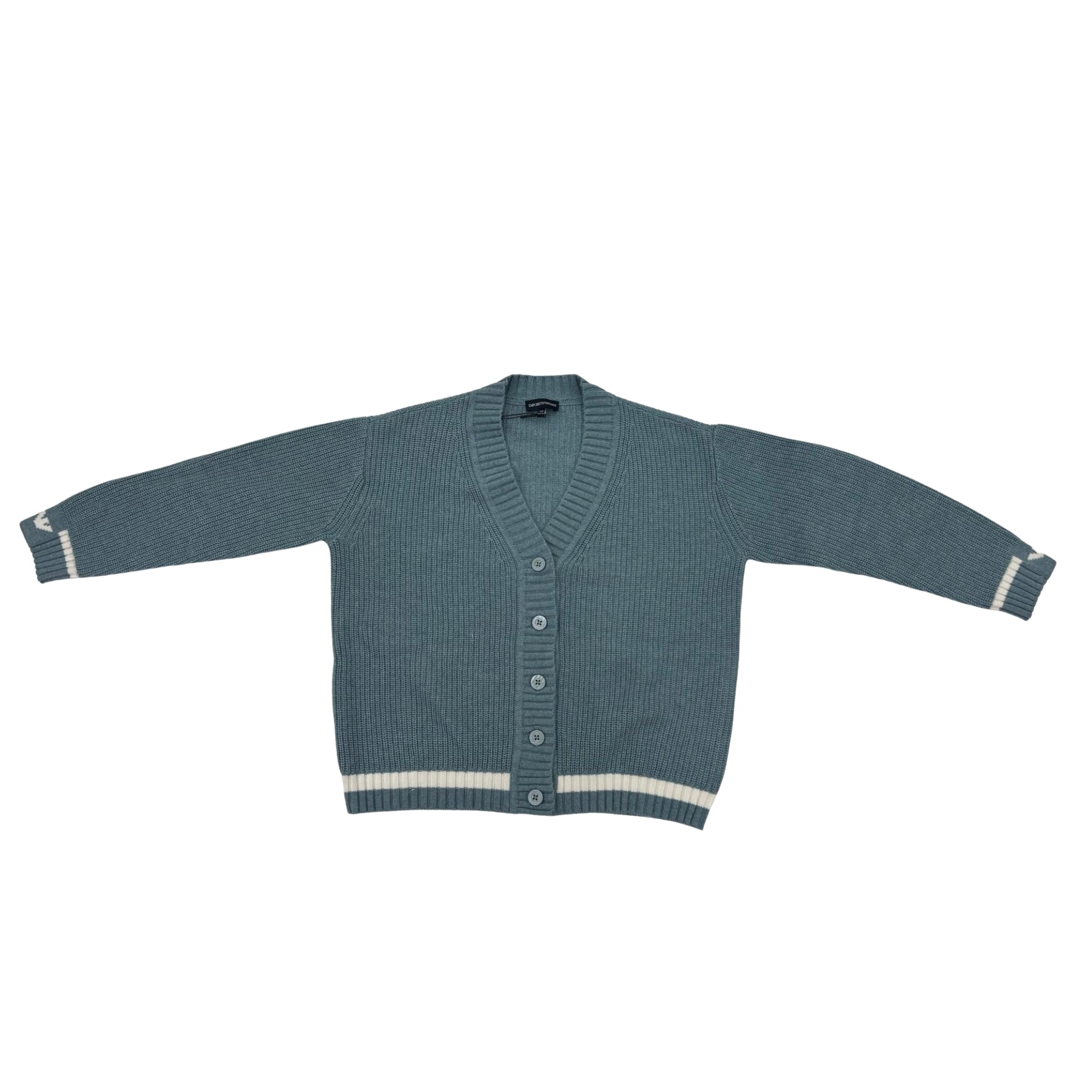 EMPORIO ARMANI RIBBED BUTTON FRONT CARDIGAN WITH WHITE TRIM