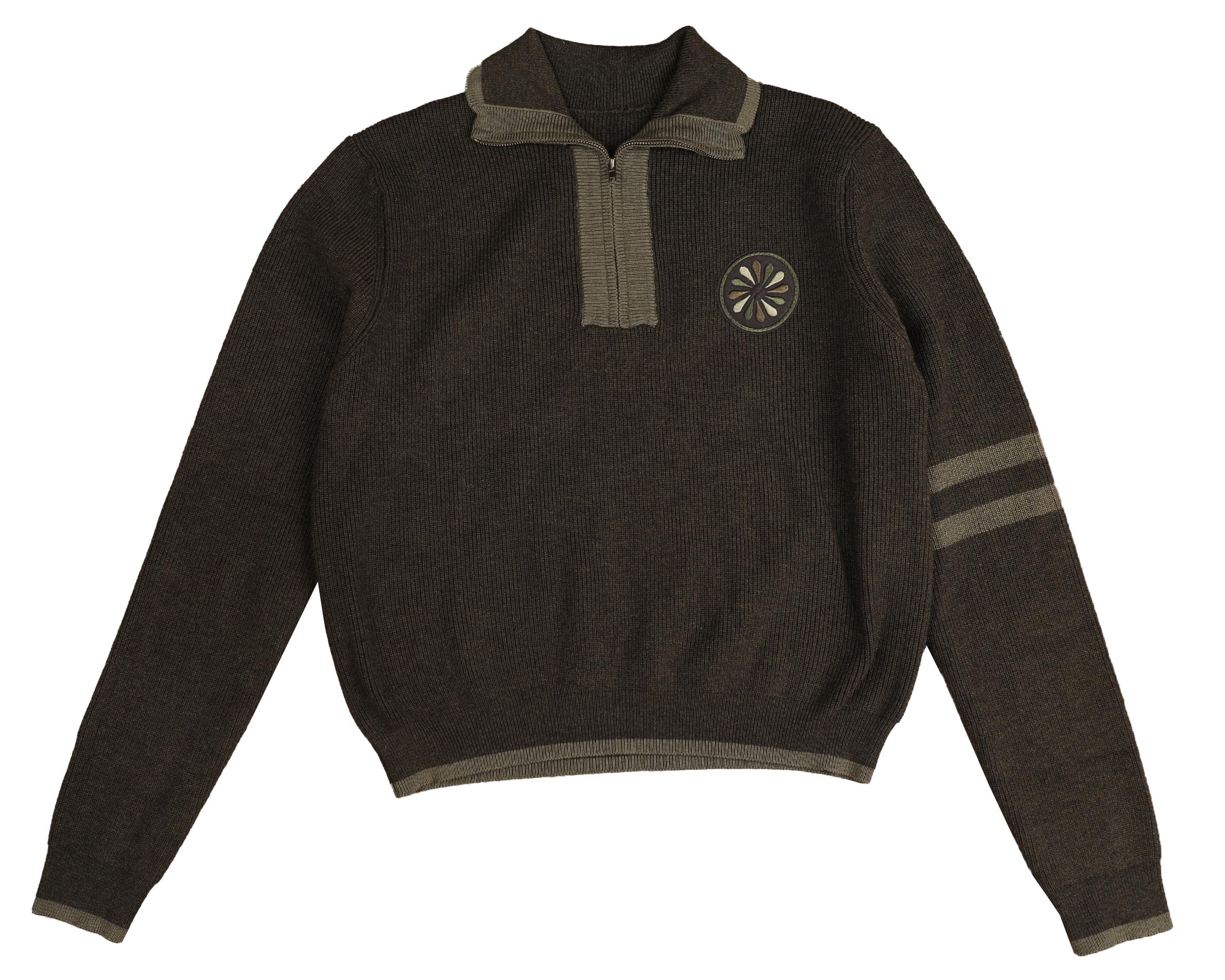 HEV CONTRAST TRIMS RIBBED KNIT COLLAR SWEATER