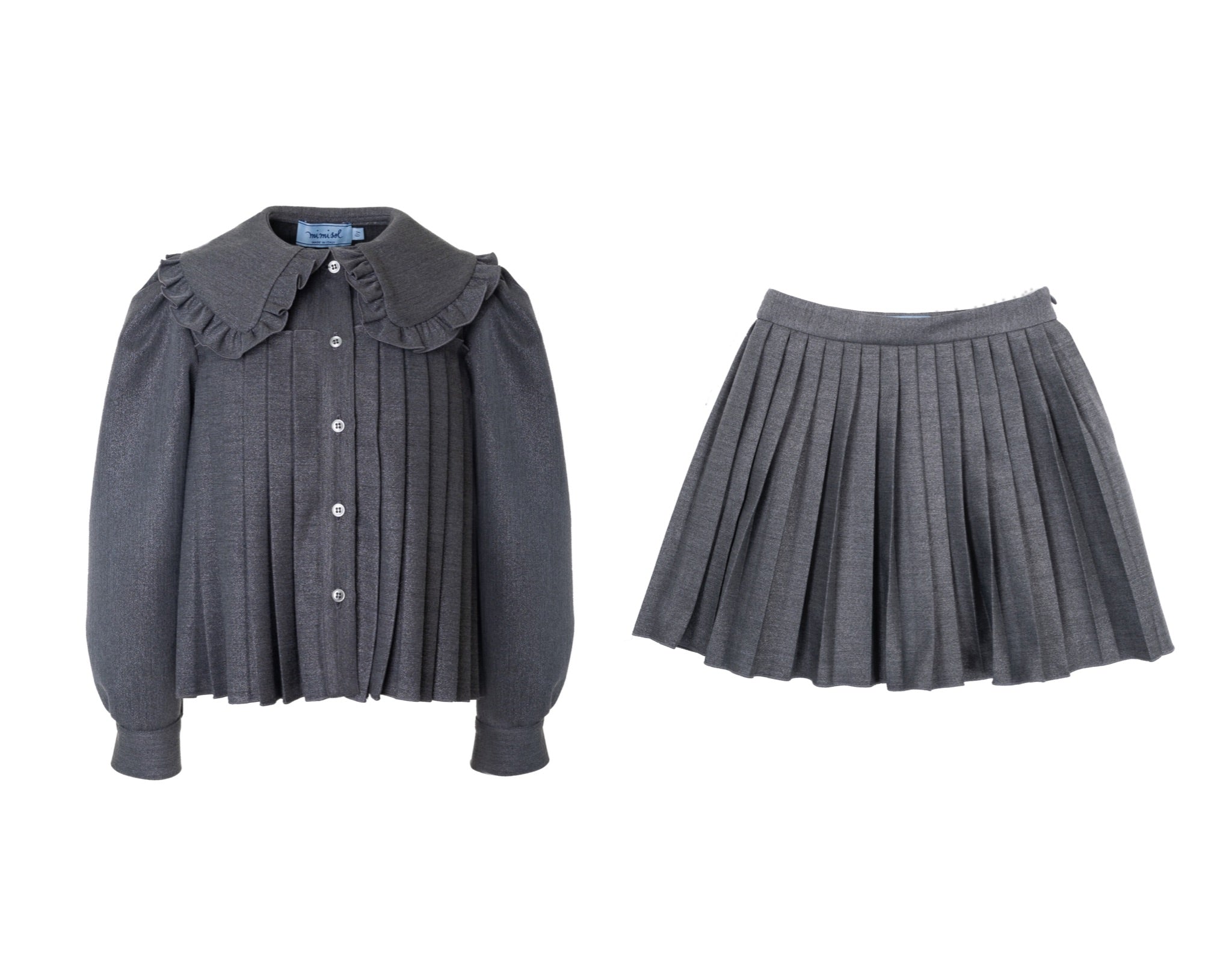 Increase quantity for MIMISOL 2PC RUFFLE COLLAR PLEATED SHIRT WITH PLEATED SKIRT