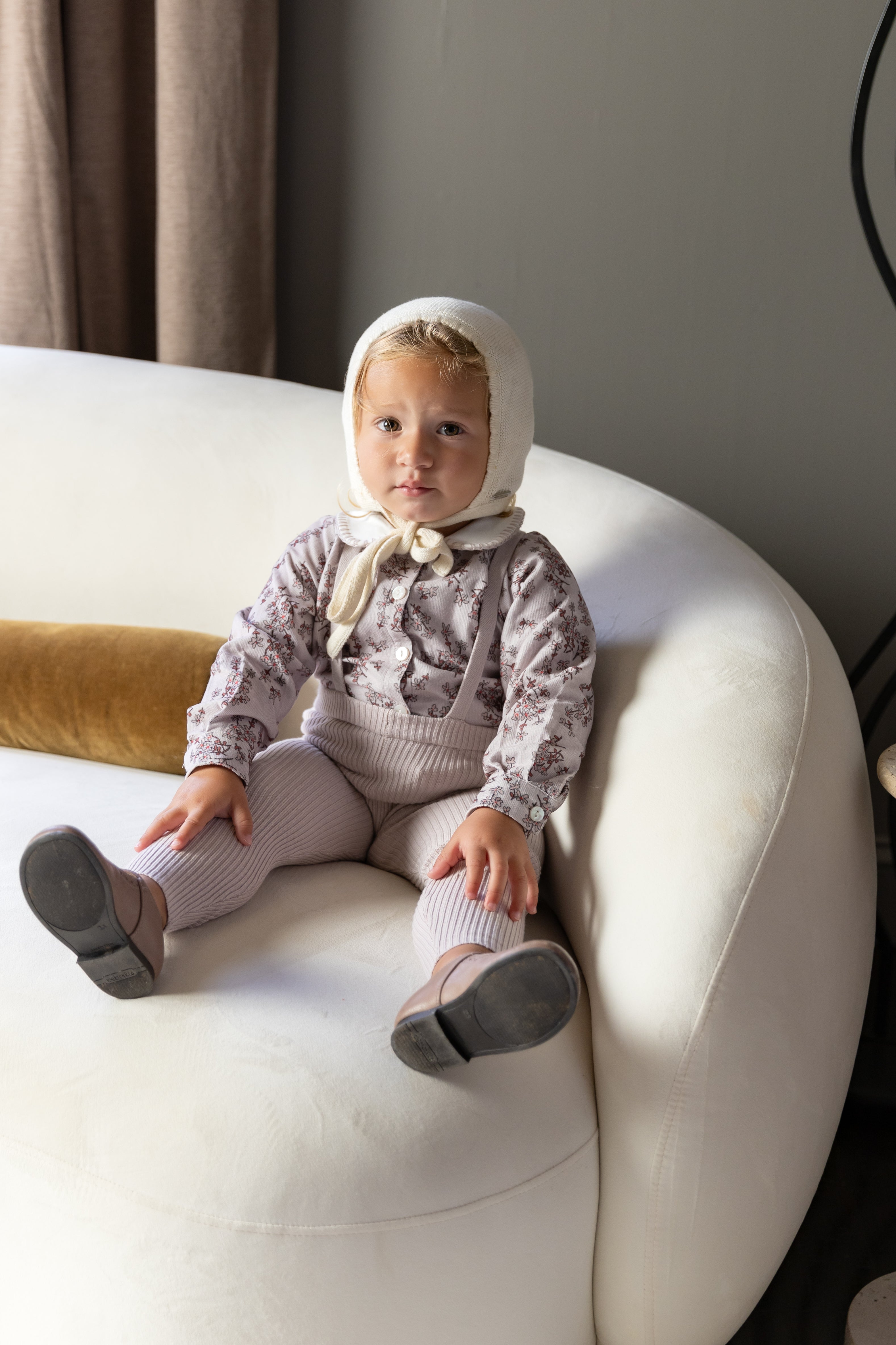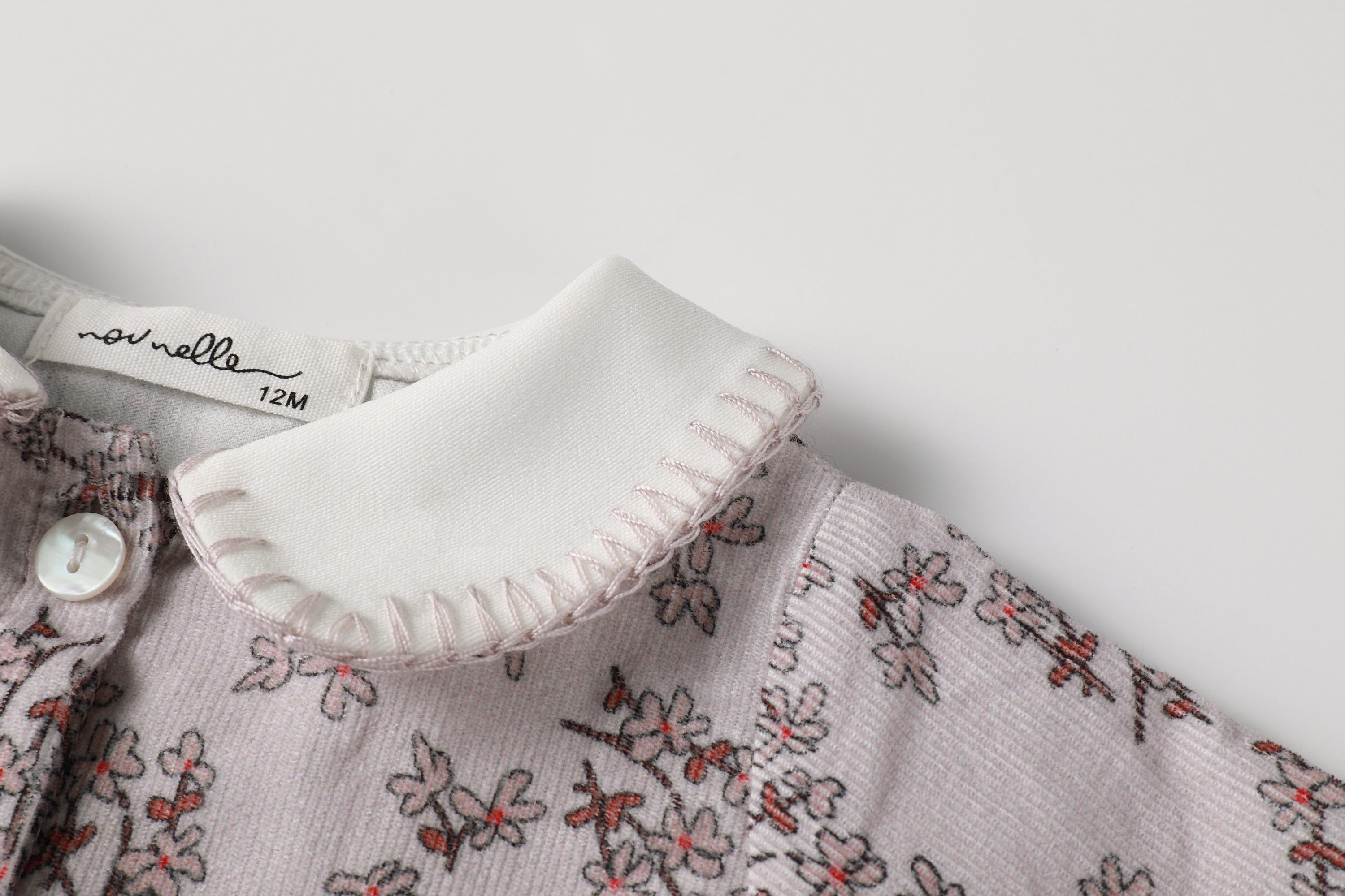 NOU NELLE 2PC CORDUROY FLORAL SHIRT AND KNIT SUSPENDER PANTS SET