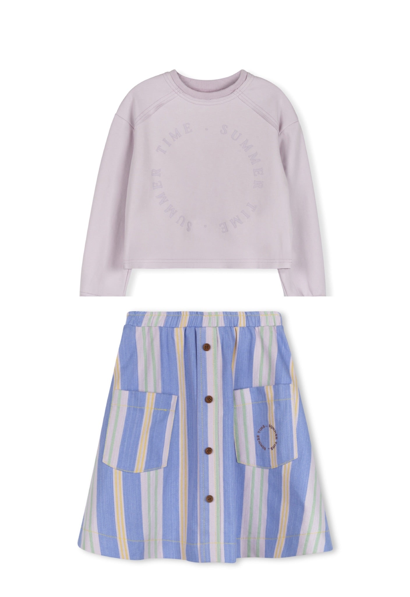 PHIL AND PHOEBE 2PC JOJO EMBOSSED TEE WITH JOJO COLORED STRIPE SKIRT