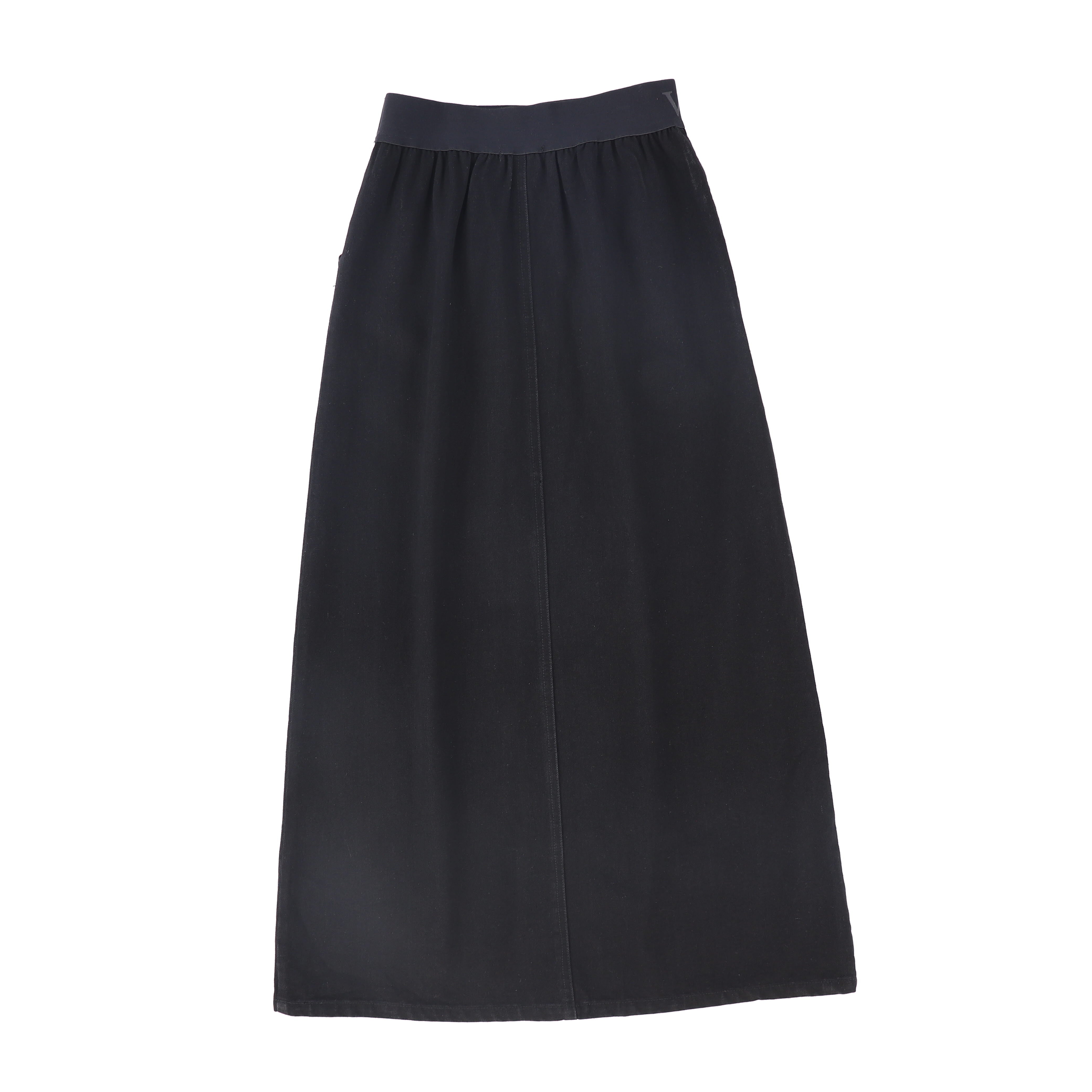 Increase quantity for VALENTINA LOGO WAISTBAND DENIM MAXI SKIRT